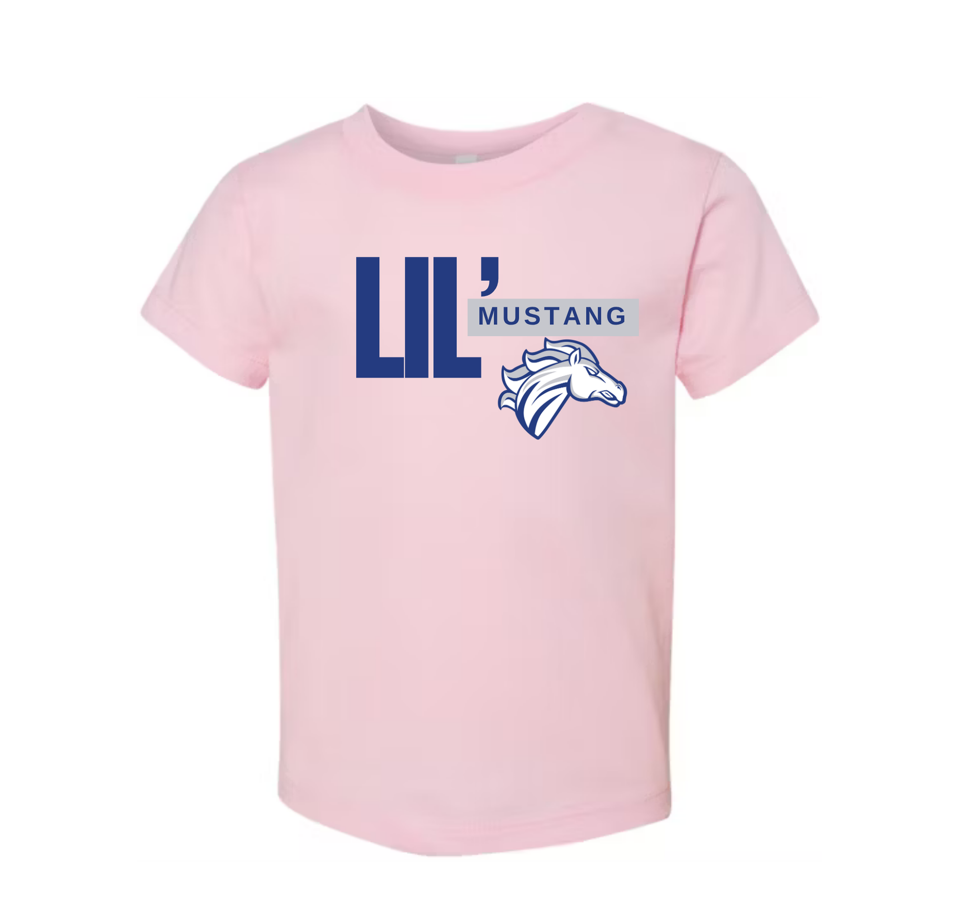 Your little one will shine with school spirit in the Lil' Mustang Toddler T-Shirt in pink! Crafted from a soft cotton/rayon jersey and polyester blend, this tee is gentle on delicate skin and perfect for everyday wear. Featuring playful "Lil' Mustang" lettering, it’s a fun and comfy way for the tiniest fans to show their St. Agatha pride. Ideal for playdates, school events, and family outings!